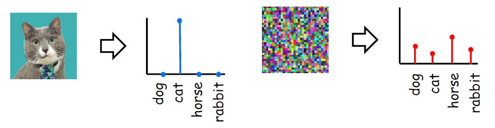 NN은 과신 예측을 출력하는 경향이 있다. NN은 노이즈 이미지에 대해 높은 신뢰도로 예측을 반환하는 것이다.