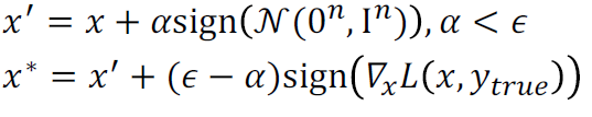 FGSM을 사용하기 전에 먼저 작은 임의의 섭동을 적용합니다.