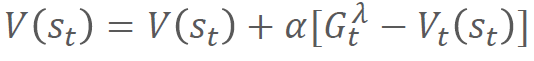 𝑉𝑠𝑡 = 𝑉𝑠𝑡 + 𝛼(𝐺𝑡𝝀 - 𝑉𝑠𝑡)