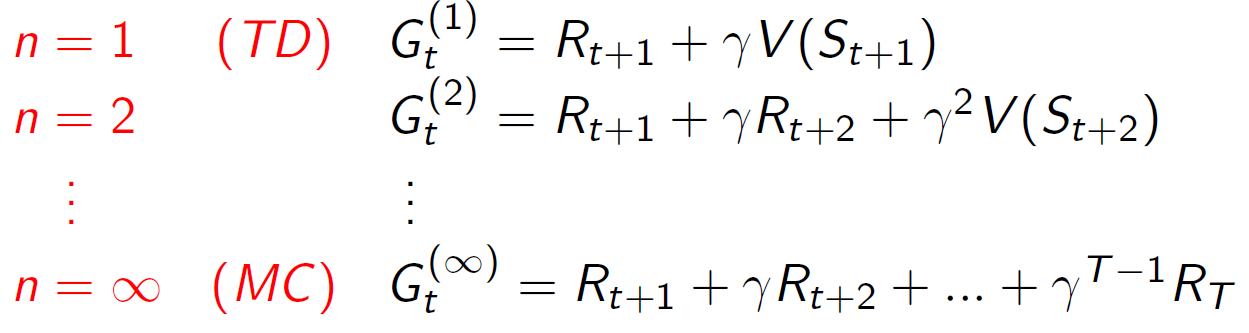 𝑛-Step Return은 𝑛=1,2,..∞에 대한 다음과 같은 n-스텝 리턴을 고려합니다: