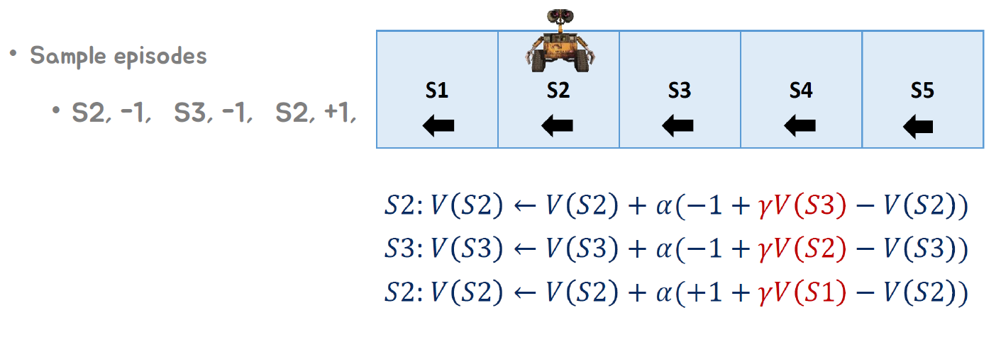 다음으로, TD(Temporal Difference) 방법을 사용하여 가치 함수를 추정하면 다음과 같습니다: